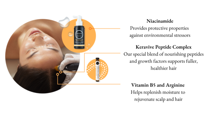 We then infuse hydrating and nourishing peptide-infused serums into the scalp and hair follicles.